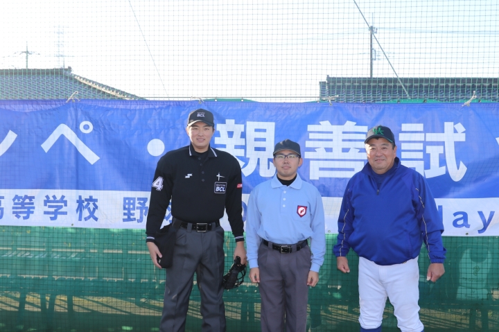 花を添えていただいたOBの審判3名
